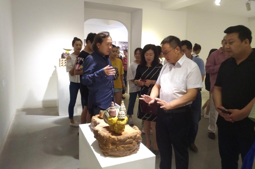 张有明校长在美术与设计学院陶艺工作室了解陶艺设计情况。