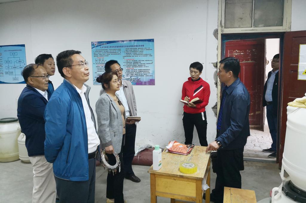 督查组一行在李慕堂陪同下实地查看了化学化工学院实验室、危化品暂存库、配电室、学生宿舍、学生食堂、信息网络中心、门卫值班室等场所。