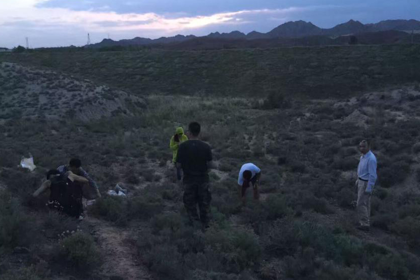 学科团队成员在白银东大沟矿区进行生态调查。