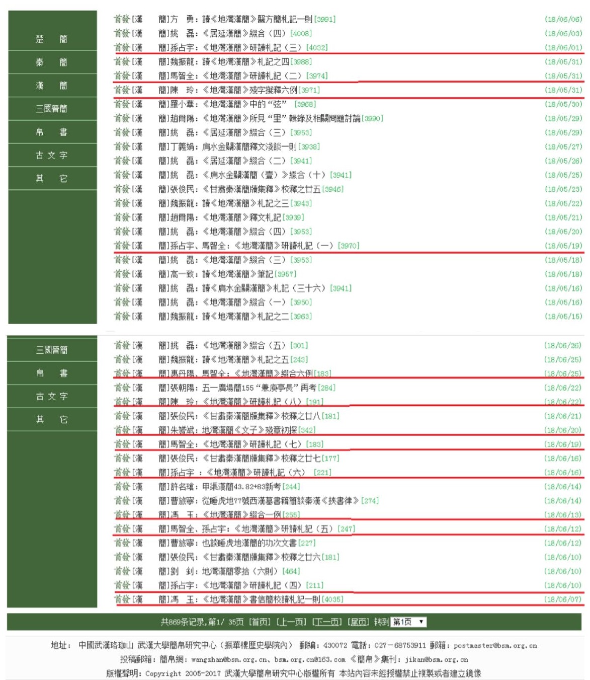 读简班在武大“简帛网”连续发表读简成果。
