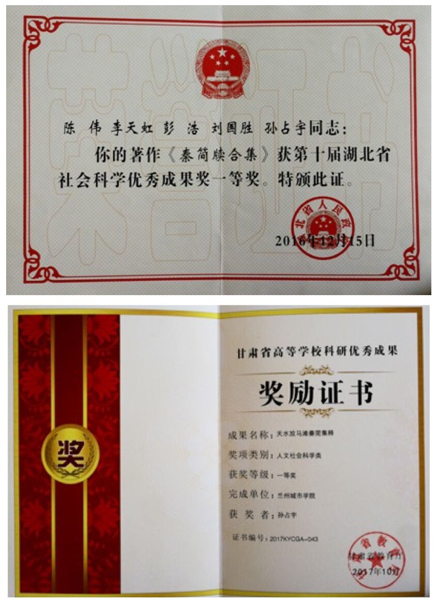团队成员的研究成果也得到了学界认可。2016年10月,孙占宇专著《秦简牍合集(四):放马滩秦墓简牍》荣获得甘肃省高等学校科研优秀成果奖一等奖;其后,包括该书在内的《秦简牍合集》再次获得湖北省社会科学优秀成果奖一等奖。2017年10月,孙占宇专著《天水放马滩秦简集释》获甘肃省高等学校科研优秀成果奖一等奖。2017—2018年,beat365官方网站简牍研究所与甘肃简牍博物馆等单位合办的学术辑刊《简牍学研究》连续出版了第六、七辑,受到学界好评,也在一定程度上提升了该学科的学术影响力。