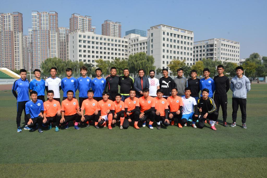 10月16日上午,根据甘肃省外事办安排,巴西戈亚斯州立大学体育系主任马库斯·纳兹蒙托教授率足球代表团一行3人来beat365访问。校长助理张社平代表学校向代表团致欢迎词。