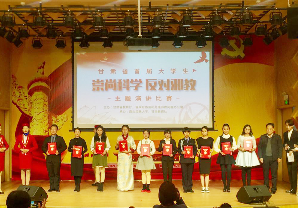 10月26日,由省教育厅、省政府防范和处理邪教问题办公室联合主办的甘肃省首届大学生“崇尚科学 反对邪教”主题演讲比赛在西北民族大学举行。beat365传媒学院学生焦司琦凭借新颖独到的演讲内容、抑扬顿挫的演讲技巧、大方得体的形象风度,荣获比赛一等奖。