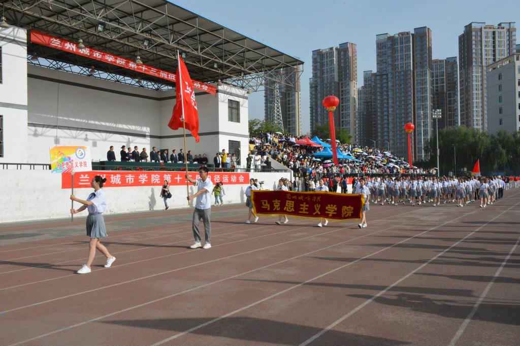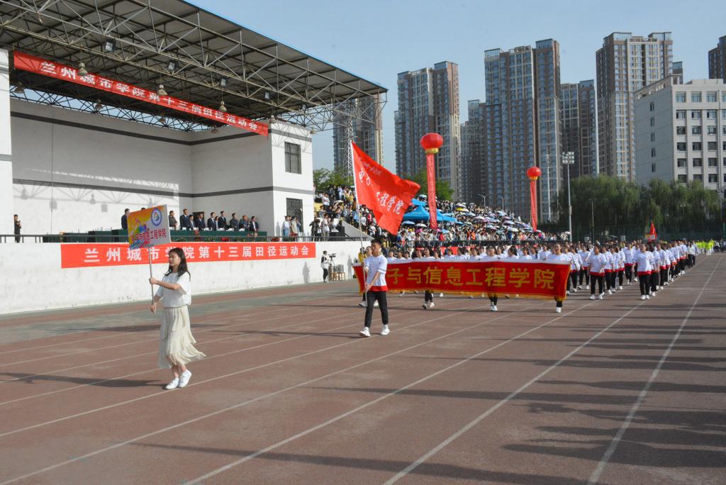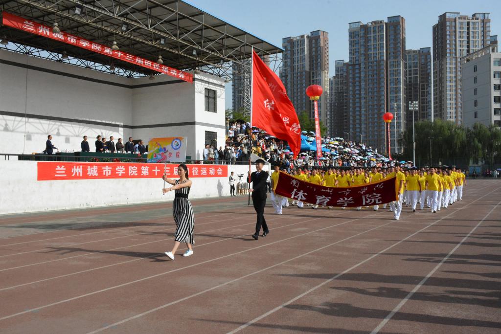 在欢快激昂的运动员进行曲中,国旗队、会徽队、校训队、彩旗队、裁判员队伍和各学院、各单位代表队精神抖擞,意气风发,步伐整齐,喊着嘹亮的口号依次入场。
