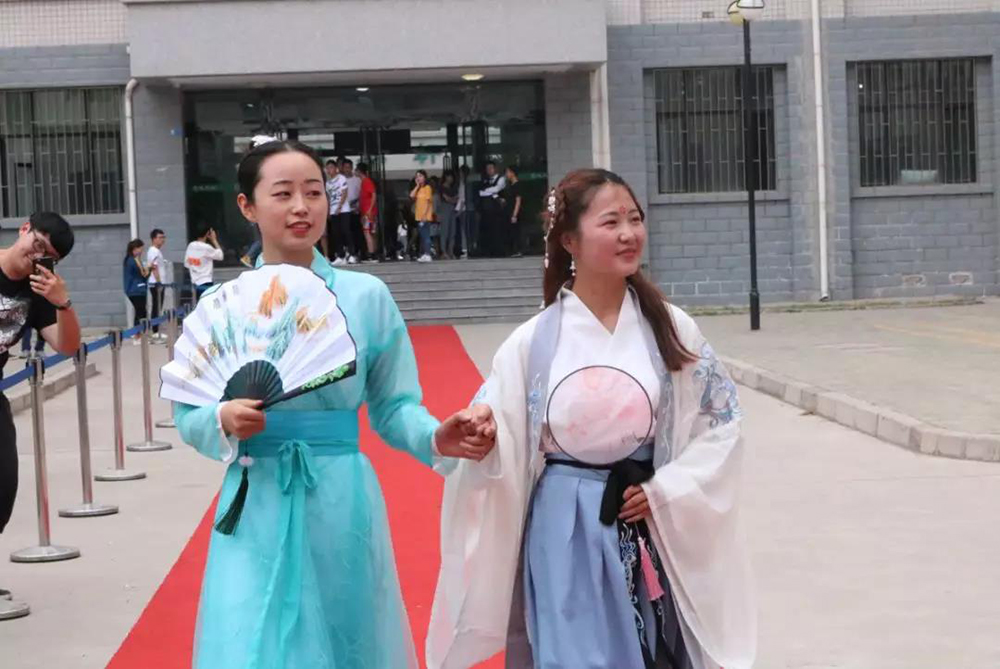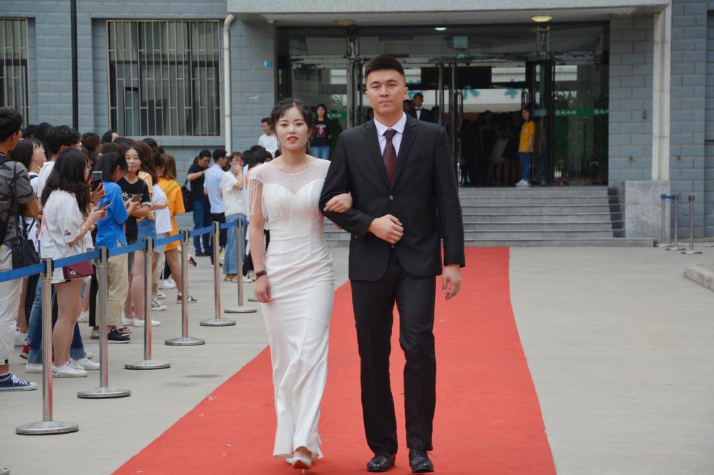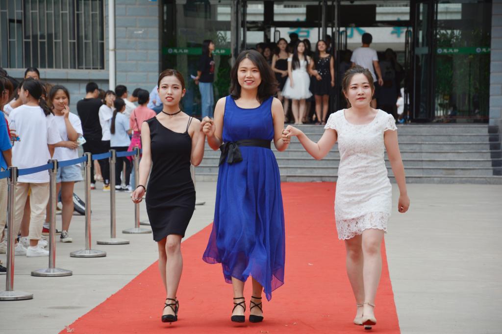 晚会开始前,校团委、学生会还在校本部礼堂楼前广场举行了毕业生“红毯秀”以及照片墙留影活动,来自全校18个学院的近400名毕业生代表以学院为方阵,身着精美礼服走过红毯,在签名墙上留下了自己的名字。