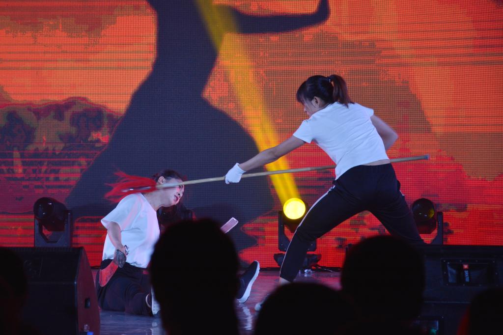 晚会在劲爆灯光秀和动感十足的健美操《律动青春》中拉开帷幕,激情四射的节奏、颇具张力的肢体动作,将现场气氛瞬间点燃。“追梦”篇章里,幼儿师范学院舞蹈《追梦人》用舞蹈诠释了“我们都在努力奔跑,我们都是追梦人”的青春梦想,展现了在伟大中华人民共和国成立70周年华诞即将到来之际,新时代的青年树立远大理想信念,听党话跟党走,让青春在奋斗中铸就出彩华章的信心决心;旅游学院舞蹈《扇舞丹青》旋律优美,舞姿轻盈,一把把团扇在收放自如中尽情展示着古典文化的意蕴与典雅;体育学院武术《武韵》展示了中华武术的魅力;大学生艺术团诗朗诵《写给未来的你》表达出了青年学子对五四运动100周年的深切纪念与深情缅怀。在“忆梦”篇章,幼儿师范学院合唱《我和我的祖国》和《匆匆那年》,熟悉的旋律,浑厚的歌声,饱满的情感,唱出了对青春年华的珍惜和对伟大祖国的无限祝福;音乐学院男子群舞《巴依勒德呼》跳出了草原人的威武、雄壮;培黎校区同学带来的歌曲串烧《青春记忆》和音乐学院爵士舞《Get the power》让大家感受到了当下流行乐舞为大家带来的动感旋律;幼儿师范学院舞蹈《沁园春•雪》用专业的表演、充满剧情的舞蹈编排表达了一代青年的理想与担当;音乐学院阿卡贝拉《传奇》用独特的和声伴奏,演唱了一曲不一样的“传奇”。在“圆梦”篇章,幼儿师范学院舞蹈《永恒旗帜》,舞袖柔和舒展,音乐抑扬顿挫,舞姿婀娜优美,在向五星红旗致敬的那一刻,把晚会气氛推向高潮,掌声经久不息;国际文化翻译学院舞蹈《实现的梦想》,留学生们将西方元素融入到中国的武术、太极拳表演,为毕业生们送去了不一样的离别祝福;大学生艺术团音诗画《等待》用唯美的画面,专注的表演表现了邓稼先为中华崛起而追梦、圆梦的不朽情怀!
