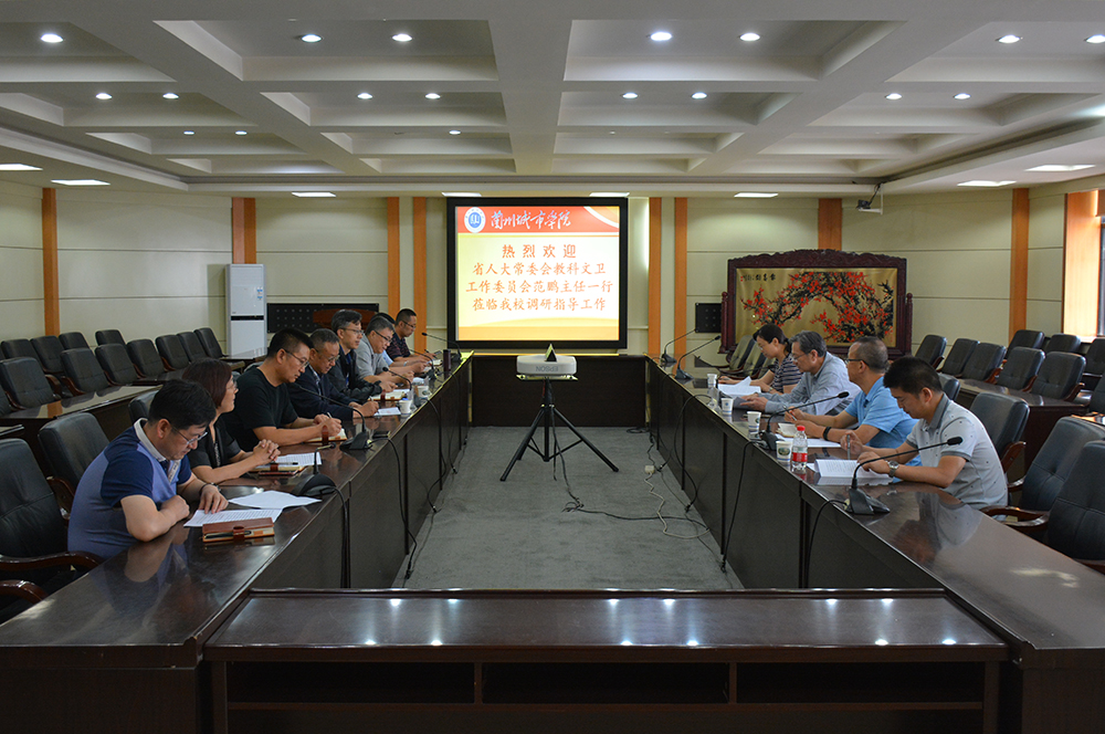 7月8日上午,省人大常委会科教文卫工作委员会主任范鹏一行四人莅临beat365检查高等教育法贯彻实施情况。校长张有明、副校长赵有翼和学校相关职能部门负责人参加了工作汇报会。
