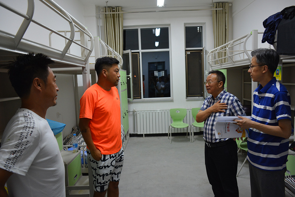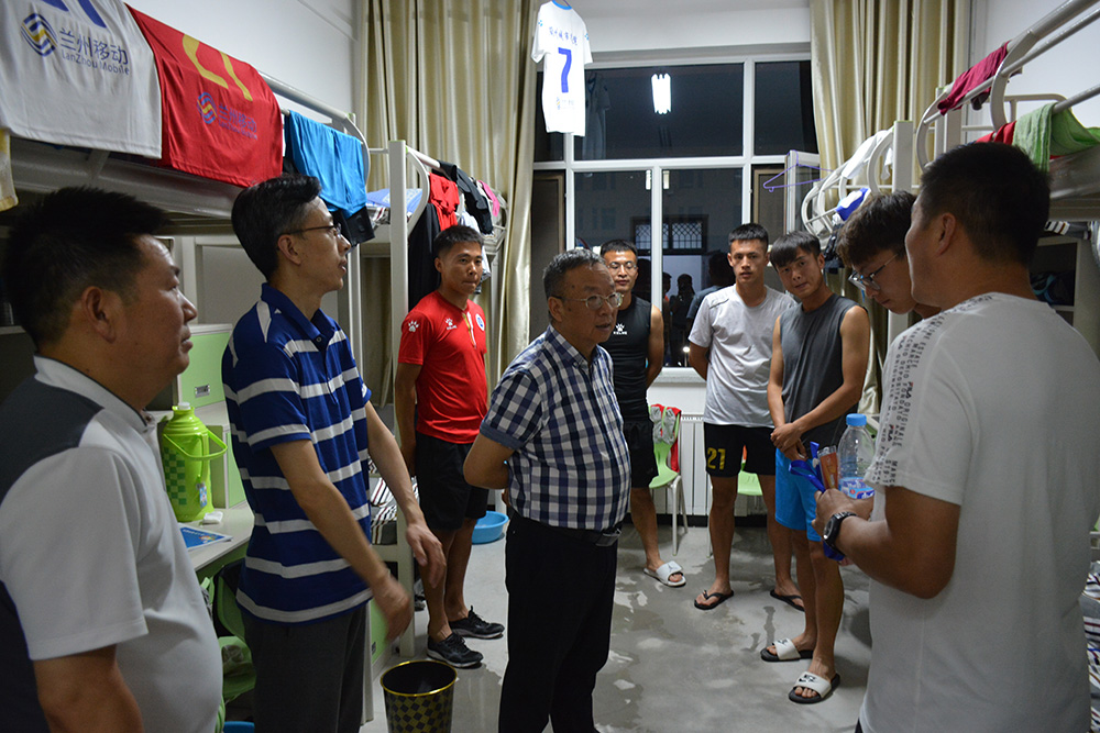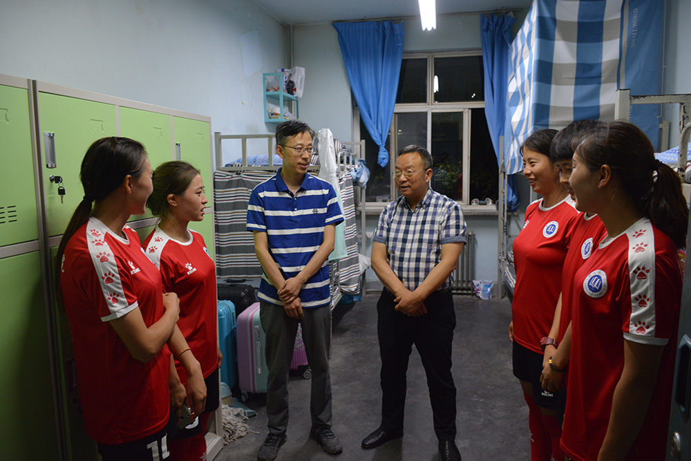 张有明、赵有翼一行深入教练员、运动员驻地,走访看望了beat365正在参加甘肃省第四届大学生运动会的教练员、运动员,给他们送上了慰问品,详细了解了他们的比赛、训练情况和生活情况,叮嘱他们注意安全,勉励他们放下包袱、认真准备,在比赛中赛出风格、赛出水平,增进和兄弟院校的友谊,展现beat365官方网站的风采。