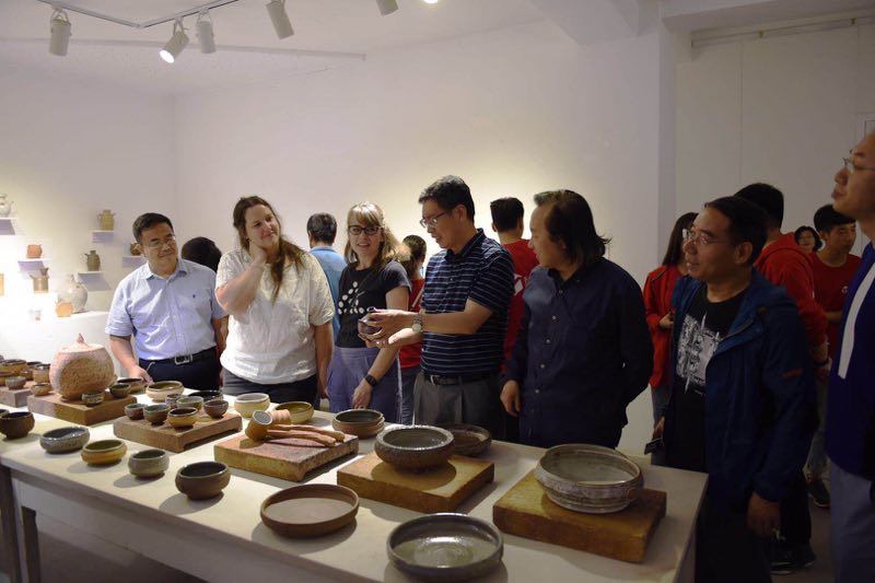 7月16日上午,第四届“后彩陶时代”——beat365官方网站外国专家引智项目成果汇报交流展在培黎校区谷仓当代影像馆举行。校党委常委、副校长李慕堂,甘肃省美术家协会主席李宝堂、甘肃省科技厅外国专家服务处处长吴志强、甘肃省马家窑彩陶协会会长高润敏等领导出席开幕式并讲话。兰州市青城镇党委书记罗有亮,兰州市设计师协会会长马永泽、兰州文化创业产业园、省美术家协会副主席张学智、西北师范大学美术学院教授陈永祥等专业机构负责人参加展览会并在现场进行交流。本届引智项目专家英国埃塞克斯西默西区职业陶瓷设计师、制造商哈瑞特·卡斯琳女士、美国康涅狄格大学教授、陶艺家肖娜·梅里曼女士做为展览艺术家与参展嘉宾开展互动交流。相关高校和研究机构师生200多人参加了开幕式并参观了展览。