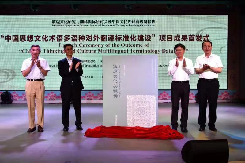 在由中国外文局、甘肃省人民政府指导,中国翻译研究院、中国翻译协会、甘肃省外办、敦煌研究院主办,当代中国与世界研究院、香港汉学发展慈善基金会承办,敦煌市政府、甘肃省翻译协会协办的“敦煌文化研究与翻译国际研讨会”上,作为研讨会重要议程内容的“中国思想文化术语多语种对外翻译标准化建设”项目重要成果——《敦煌文化关键词(中英对照)》在开幕式上隆重发布。