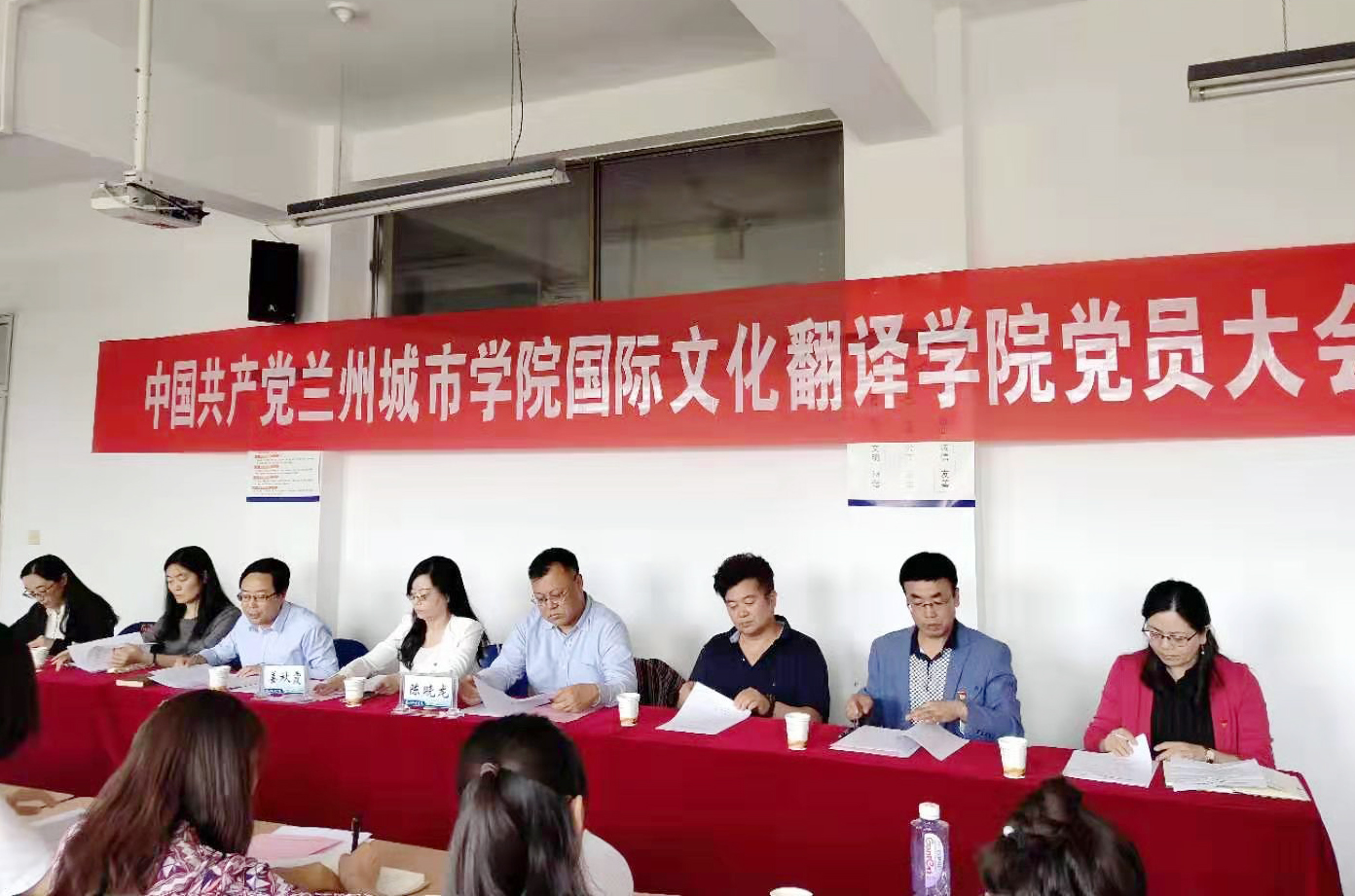 8月26日下午,国际文化翻译学院召开党员大会,校领导陈晓龙、姜秋霞到会祝贺,学院全体党员参加大会。