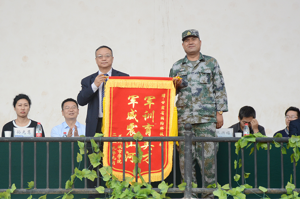 校党委副书记、校长张有明向军训团赠送了锦旗,并作了总结讲话。他指出,在为期14天的军训中,军训团始终坚持以学生为本,科学施教、严格训练,使参训学员的精神面貌发生了可喜变化。各学院、各单位加强协作,开展了有奖问答等形式的入学教育活动;带队教师吃苦耐劳,关爱学生,保障了军训的安全和质量;全体同学认真接受规范化训练,加强自我教育、自我管理,培养了优良作风。他希望,全体参训同学深刻理解“手脑并用、创造分析”的校训精神,把在军训中培养的好作风、好习惯贯穿到今后的大学生活中,把拳拳报国情转化为坚定的报国志,转化为踏实的报国行,心存梦想,砥砺前行,刻苦学习,练就本领,为祖国交上一份完美的青春答卷。