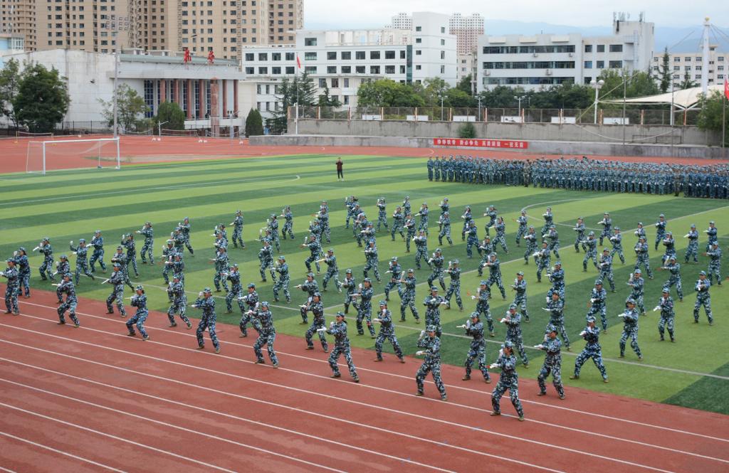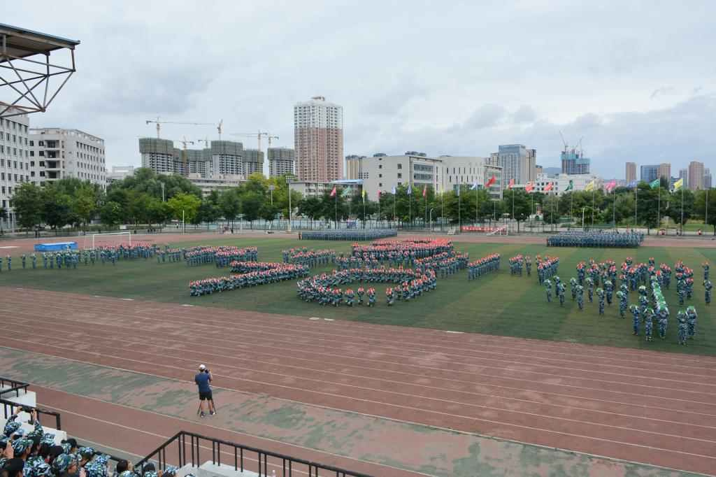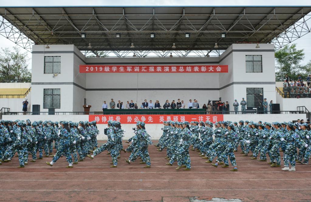 本次军训,学校结合“庆祝新中国成立70周年、红军长征胜利83周年”活动,使爱国主义成为新生军训内容与入学教育的突出特色,引导学生树立强烈的民族自尊心和自豪感。汇报表演中,千名同学摆出“不忘初心、牢记使命” “中国人” “1949-2019” “70”等字样,千人激情合唱《我和我的祖国》《歌唱祖国》,歌声嘹亮,慷慨激昂,突出了爱国主义主题教育,深切地表达了全体师生对伟大祖国的热爱之情与真诚歌颂,赢得了领导们的称赞。