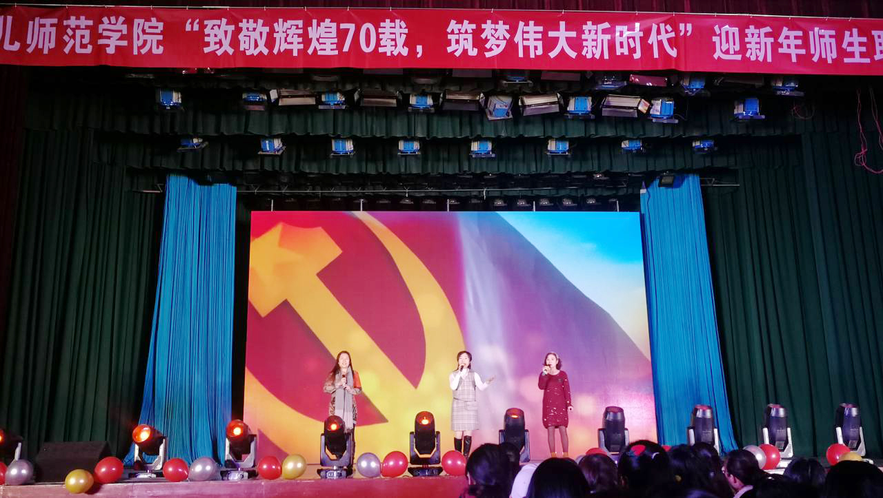 为庆祝中华人民共和国成立70周年,迎接充满希望的2020年,12月29日晚,幼儿师范学院在东校区礼堂举办“致敬辉煌70载,筑梦伟大新时代”迎新年师生联谊晚会。学院全体师生观看了晚会。
