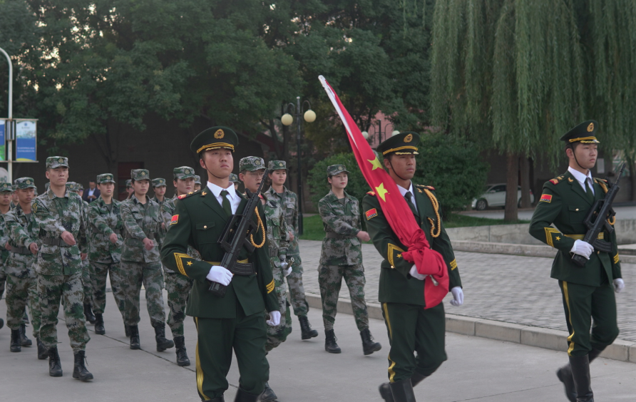7点整,升旗仪式正式开始。伴随着激昂的中华人民共和国国歌,国旗在朝阳下冉冉升起。参加升旗的师生目光坚定,凝视着晨曦中迎风飘扬的五星红旗,行注目礼。
