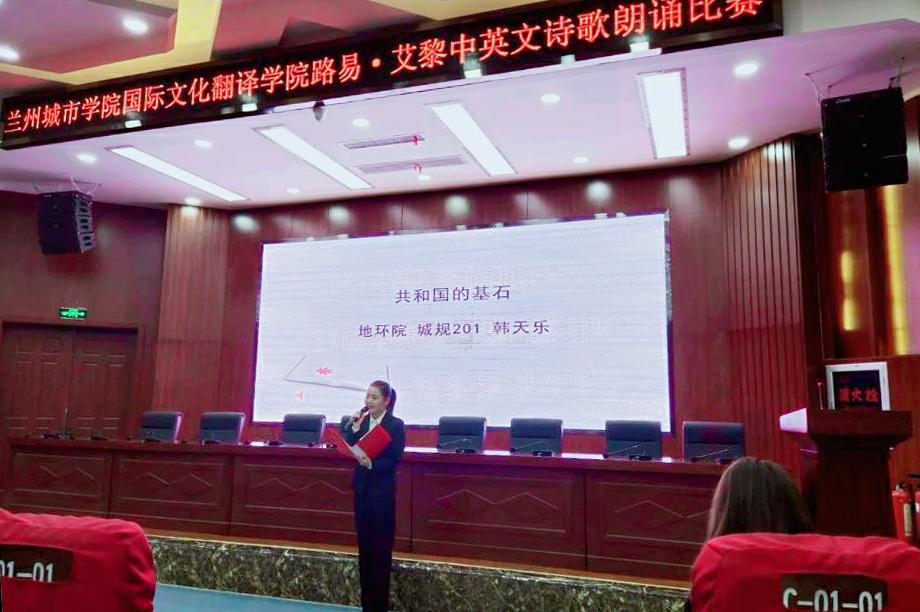10月28日下午,由校团委主办、国际文化翻译学院承办的“路易·艾黎中英文诗歌朗诵”比赛在大学生活动中心举行。国际文化翻译学院学院、甘肃文化翻译中心、路易·艾黎研究中心负责人与300多名学生一起参加了活动。