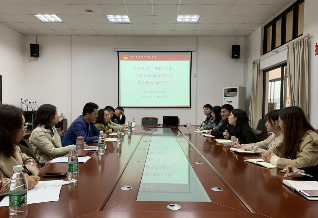 同时,利用课余时间,校团委组织培训团干部与苏州大学团委工作人员进行了交流。座谈会上,两校共青团干部分别就团组织建设、学生科技创新、社会实践、校园文化建设、学生骨干培养、志愿者项目等工作进行了深入交流,并就两校共青团工作中面临和存在的一些突出难点、共性问题进行了研究和探讨。