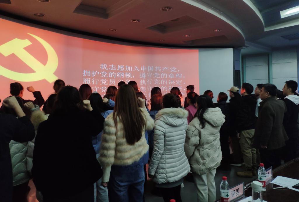 活动伊始,2020年下半年新发展的9名党员及80多名师生党员面向鲜红的党旗,郑重举起右手,高声诵读入党誓词,再次感受和领悟初心的永恒、宗旨的神圣、使命的伟大。