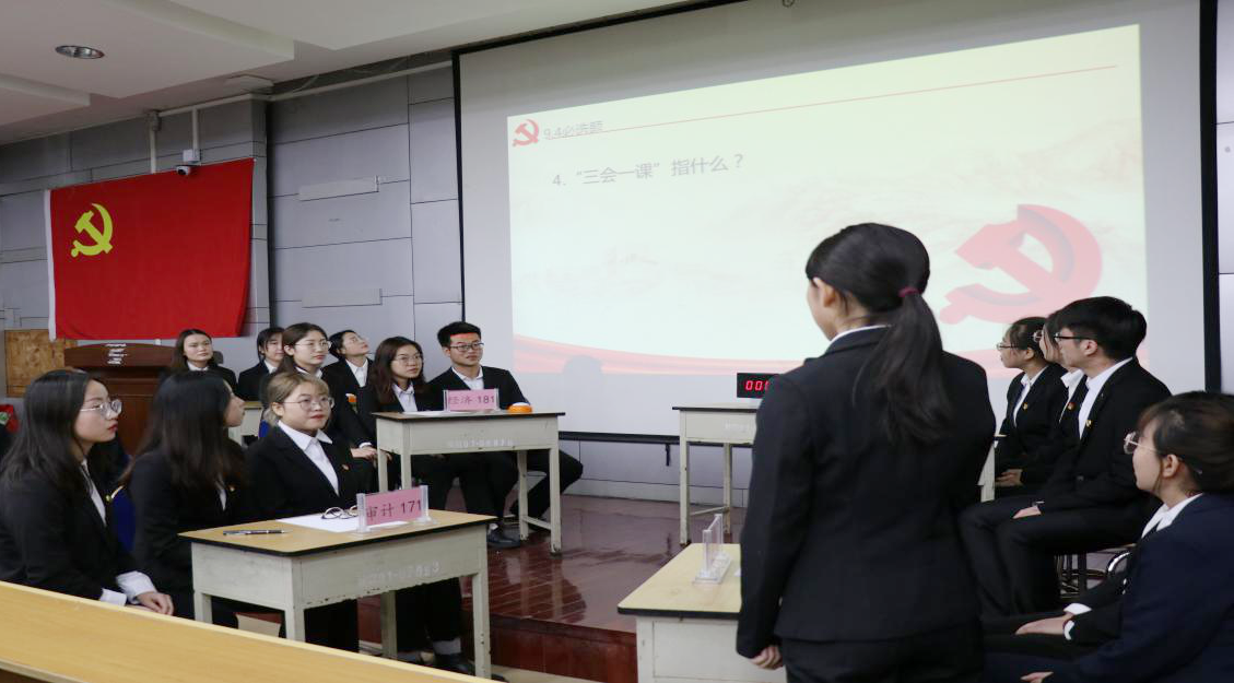 比赛前,全体党员重温入党誓词,会场威严庄重。经过必答、选答、抢答环节和加时赛等环节的激烈角逐,最终城管181班代表队荣获一等奖,审计171班、城管171班代表队荣获二等奖,审计181班、社工171班、财管182班代表队荣获三等奖。