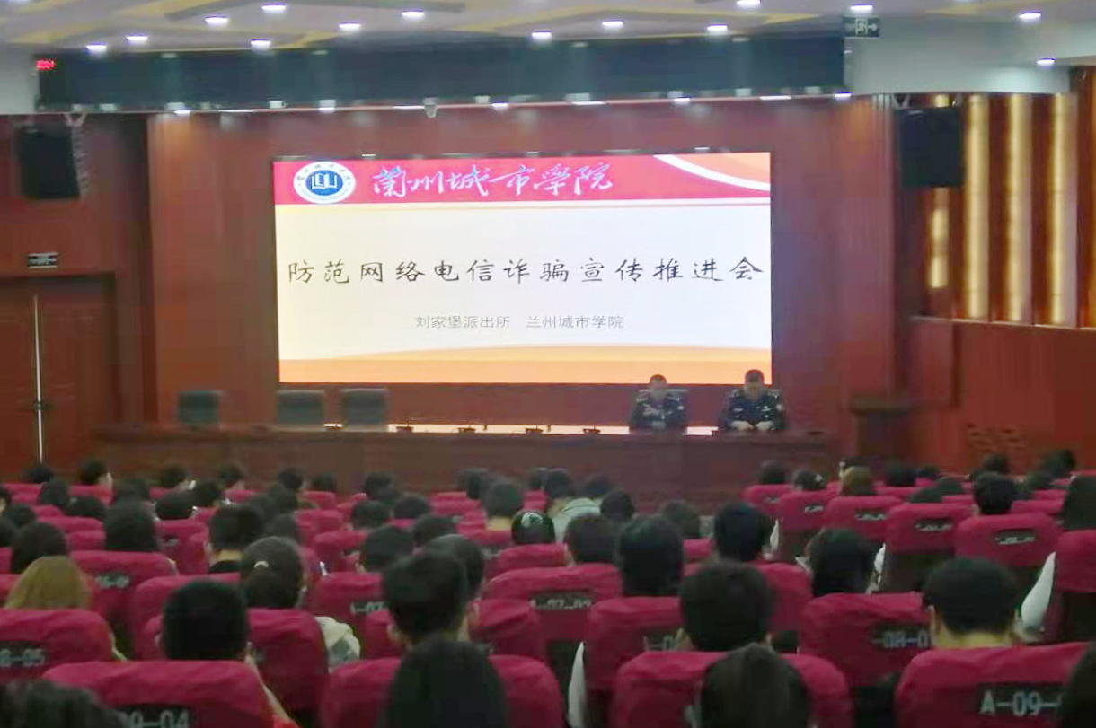 为进一步加强校园安全,提升beat365师生防诈骗意识和安全防范能力,依法切实维护学生根本利益,增强师生安全感,3月28日下午,保卫处、学生工作处在校本部大学生活动中心举行“警官进校园——防范网络诈骗“宣传推进会,兰州市公安局安宁分局刘家堡派出所副所长及辖区联络警官来校,做“警官进校园——从我做起防范电信诈骗”主题宣讲,保卫处、学生工作处有关人员、二级学院辅导员和全校学生干部200余人参加会议。