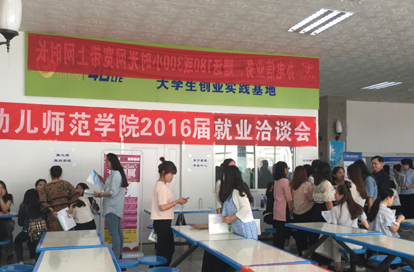 5月24日下午,幼儿师范学院2016届毕业生就业洽谈会在东校区食堂举行。共有22家用人单位应邀来校参加洽谈会,提供了120多个就业岗位。洽谈会参会单位涉及教育、公共设施管理、金融等行业,大多数为幼儿师范学院学前教育专业对口的学前教育机构或早教机构。幼儿师范学院2016届毕业生共200余人参加了就业洽谈会,其中,有近70名毕业生现场与用人单位达成了就业意向。