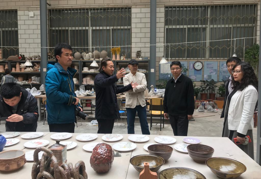 4月21日下午,美术与设计学院邀请安徽师范大学美术学院党委书记王继民带领国家艺术基金项目团队来校,到陶艺、首饰、纤维、漆艺、软装工作室参观调研。双方就党史学习教育、学科建设等进行了交流研讨,安徽师范大学国家艺术基金项目团队负责人就挖掘和整合当地的特色元素、传统技艺的当代转换、特色专业建设和凸显地方文化内涵交流了工作经验。