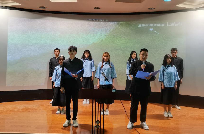 本次比赛从四月下旬启动,分为初赛和决赛两部分,初赛由视频或现场表演的方式进行,19级学生全部参加了初赛,共提交作品50个。参赛作品主题突出、感情真挚,催人向上,评委老师从思想内容、语言表达、仪容仪表、综合表现四个方面对初赛作品进行了评分,评选出16个作品进入决赛。决赛以集体诵读为主、个人诵读为辅。各参赛队伍精心准备了背景视频,在比赛中,每位选手把自己的真实情感融入到诗文中,或慷慨激昂、或婉转深情、或抑扬顿挫、或气势磅礴,声情并茂的朗诵极具层次感与感染力,引来观众一阵阵的掌声与喝彩。经过激烈精彩的比拼,最终中文191班刘家洛等同学的集体朗诵《黄河》获一等奖,历史181班张若莹等的原创诗歌作品《百年风雨砥砺奋进》、中文193班王小霞的个人朗诵《读中国》获二等奖,中文193班达瓦普尺等藏族同学集体朗诵《握手》等六项作品获三等奖。由五位评委老师集体朗诵校友童馨的创作的诗歌《祖国啊,我是那么深情的爱着你》将活动引向高潮,给文史学院的学子们起到了诵读示范作用。
