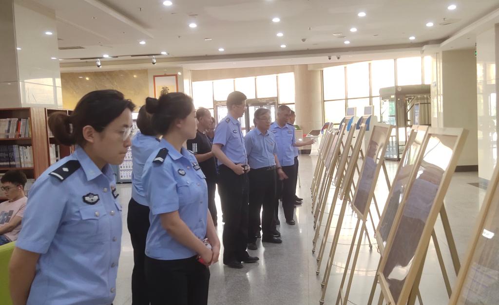 党课后,全体干警和干部职工前往逸夫图书馆二楼大厅,参观了由学校党委宣传部主办的“奋斗百年路 启航新征程”庆祝建党100周年百版红色报纸展。