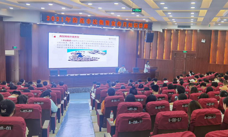 讲座邀请了中国银行安宁中心支行工作人员作为主讲嘉宾。主讲人从典型网络诈骗类型,预防通信诈骗,预防不良校园贷,识别虚假理财,规避超级网银风险等方面给大家作了讲解和分享。讲座案例丰富,讲解精彩,让beat365师生对网络诈骗及不良校园贷有了更清楚的认识和了解,提高了师生对网络诈骗、非法集资、不良校园贷的甄别、应对和抵制能力。