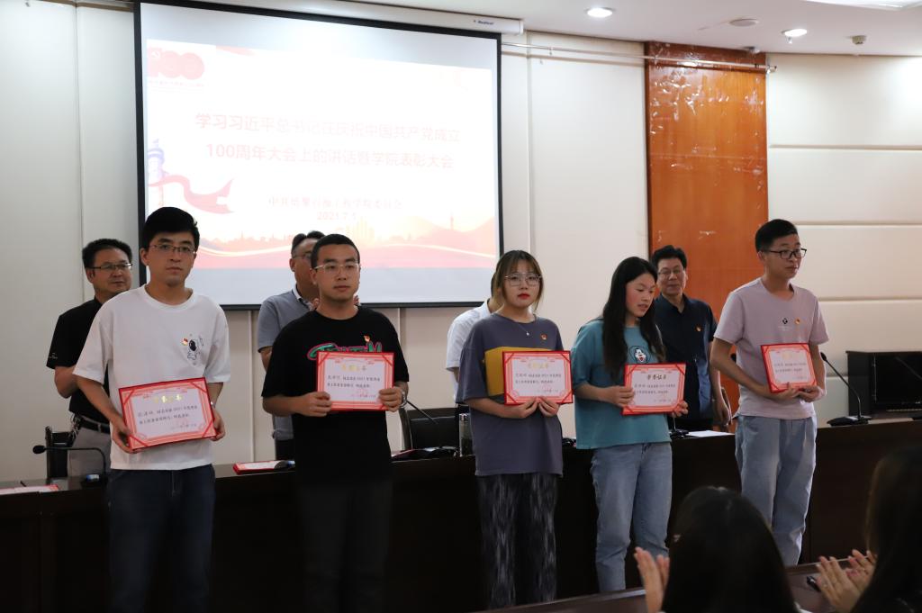 在随后进行的表彰大会上,学院负责人向荣获学院2021年优秀党员、优秀党务工作者,学习强国“学习达人”荣誉称号的先进个人颁发了证书。学院党委要求全体师生党员以先进为榜样,自觉加强党性锻炼,充分发挥共产党员的先锋模范作用,为学院发展作出积极的贡献。