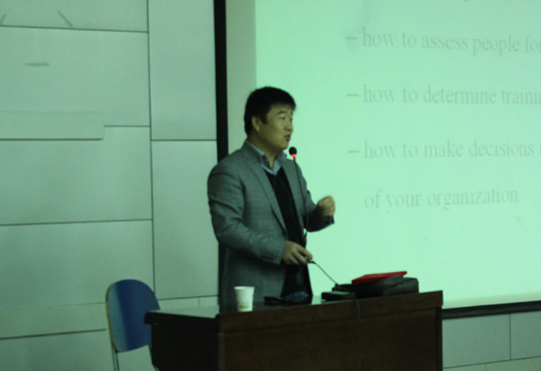 康廷虎博士从“心理学改变了管理学”的视角,介绍了人力资源管理的专业起源、发展历程、目前现状和应用前景,涉及了人员招聘与配置、员工培训与开发、员工激励与薪酬、员工绩效评估、员工心理保健等相关的管理理念与技术。他认为无论管理中的个人与群体、活动领域中的人际关系,还是主体的自身发展,包括人—职匹配、职业生涯规划等,都离不开对人的深入认识和研究,并最终归结为其实质就是心理学的问题。康博士以严谨的思维逻辑、鲜活的举例和诙谐的语言,赢得了在座师生的热烈掌声。