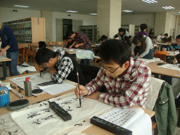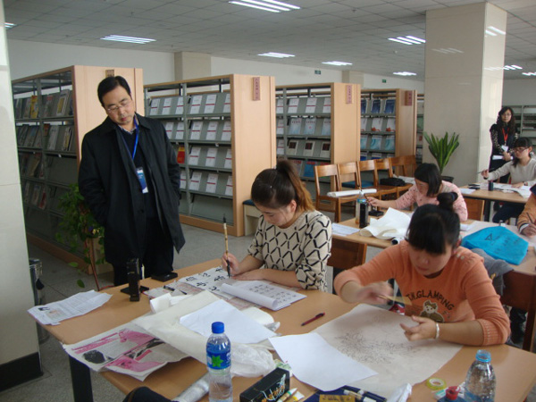 11月16至17日,教育部2013下半年中国书画等级考试beat365官方网站直属考点首次考试顺利举行,共有二百余考生参加了考试。甘肃省语委办主任王光亚对考试进行了巡视。考试分为书法、硬笔书法、色彩、素描、动漫画、国画山水、国画花鸟、国画人物共八个科目,参加考试的考生年龄最小的八岁,最大的七十六岁。