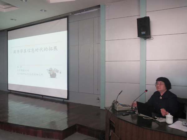 报告中,王宁先生从信息革命与信息时代的三个标志谈起,然后从汉字数字化和规范化的角度,重点讲述了汉字信息处理与汉字规范,最后通过实例分析了汉字书写的属性、汉字分析的两大要素——字体和字形,以及汉字发展的延续性对文化考据的作用,强调了研究汉字书写与字体问题的重要性。她认为汉字进入计算机,解决了汉字输入和输出的问题,是汉字走向国际化的关键因素。