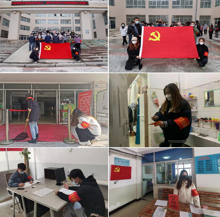 学院党委组建了党员先锋队,党员们亮起身份,佩戴党员徽章和党员先锋队红袖章,以身作则、勇当先锋,全身心投入到疫情防控工作,守护学院同学们的健康安全,让党旗在防控一线工作中高高飘扬。