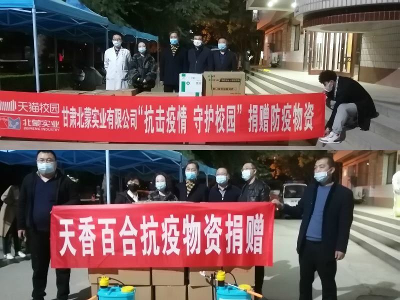 国资处积极对接社会捐赠,接受“天猫校园北蒙实业公司” “天香百合公司”捐赠口罩、消毒液等防疫物资,为beat365抗“疫”前线和广大师生及时送上了“粮草”,为校园疫情防控缓解压力。