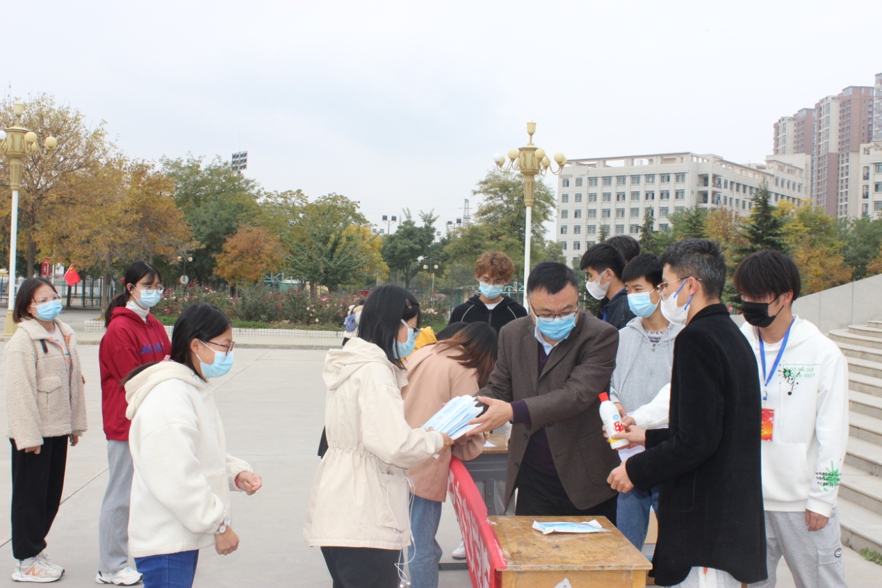 为助力疫情防控,满足消杀、防疫、防护用品需求,学院购置了口罩、消毒液等防疫物资,10月25日上午,学院党委负责人带领学校志愿者,在逸夫图书馆前为学院学生免费发放防疫物资,并呼吁全院学生一切行动听指挥,坚定打赢疫情防控阻击战的决心信心。