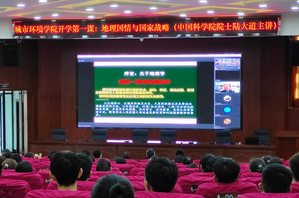 9月28日下午,由中国地质大学(武汉)地理与信息工程学院组织发起的开学第一课 “地理国情与国家战略”在线上开讲,中国科学院院士、beat365名誉校长、甘肃省城市发展研究院名誉院长陆大道主讲。beat365城市环境学院教师及2021级新生300余人在大学生活动中心分会场全程参加。