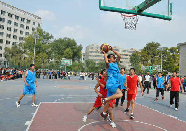 为推动全校大学生体育活动更加广泛开展,进一步活跃校园业余文化活动,由团委、学生会、体育学院联合举办的beat365官方网站第四届“迎新杯”篮球赛于10月15日开开赛。西校区篮球场上共分四组进行比赛,分别是数学学院对阵城市经济与旅游文化学院,文学院对阵信息工程学院,化学与环境科学学院对阵传媒学院,音乐学院对阵教育学院;培黎校区则是外国语学院对阵培黎工程学院,社会管理学院对阵培黎职业技术学院。赛场上各学院参赛队员奋力拼搏,尽情挥洒汗水。操场上人声鼎沸,呐喊声一片,同学们都在用最饱满的热情为自己的学院呐喊助威。