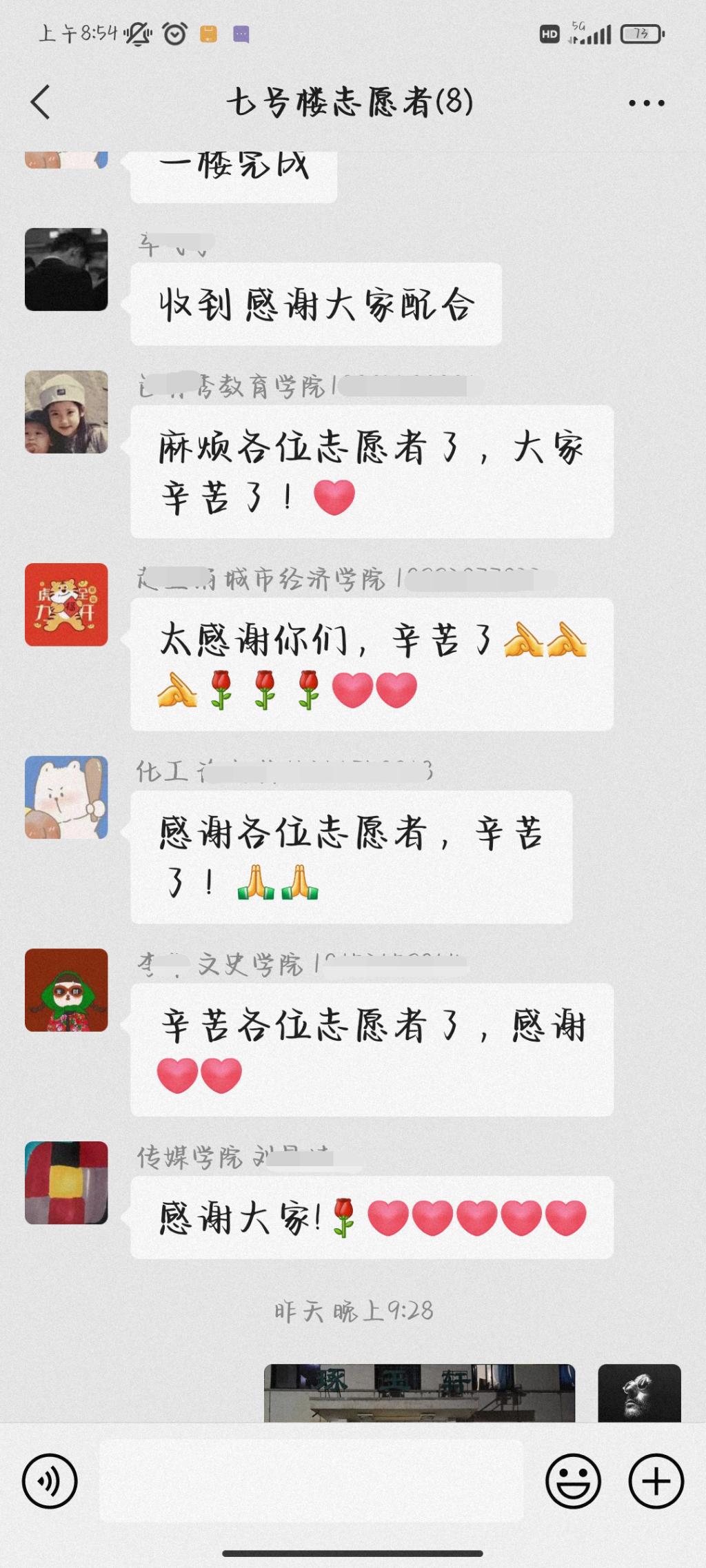 同日晚间,为解决风控区域女生7号楼同学们用热水的实际需要,团属“第二课堂”大学生成长服务中心的志愿者们与国旗护卫队的志愿者共同组成了送水志愿服务小组。春寒料峭,在志愿者手中传递着的一壶壶热水,温暖了被隔离同学的心,也坚定了我们同心协力、共克时艰的决心与勇气。