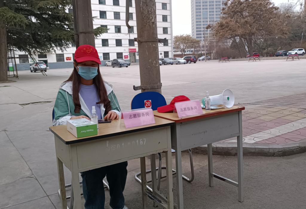 校学生会的志愿者们,在校园内设立了多处志愿服务岗,督促同学们戴口罩、不聚集、不逗留。