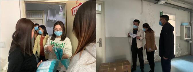 为切实保障学生的安全,学院通过校医院为学生代购口罩等防疫物资,在女生七号楼解除集体健康监测的当天,由学院领导带领大家走访每个宿舍,看望慰问学生并把一包包代表着学院关心的口罩送到学生的手中。