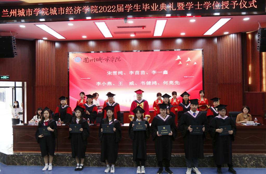 毕业典礼暨学位授予仪式在雄壮的国歌声中拉开序幕。学位授予仪式上,学院对获得2022年甘肃省优秀毕业生、校级2022届优秀毕业生、优秀实习生、优秀毕业论文获得者进行了表彰奖励并颁发了荣誉证书,对177名毕业生授予了学士学位。