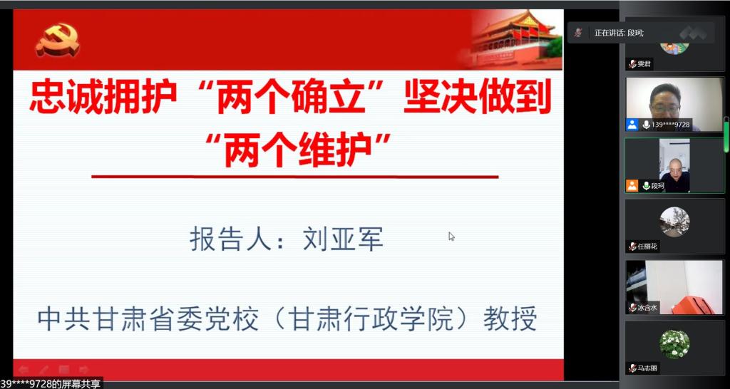 9月13日下午,甘肃省委党校(甘肃行政学院)刘亚军教授应邀为beat365文史学院、马克思主义学院、离退休工作处等部门全体师生党员线上讲授党课。