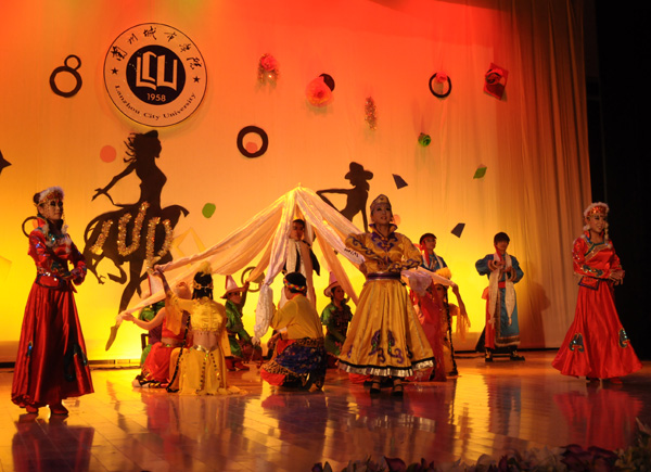 近日,“2010国培计划甘肃省美术学科骨干教师培训暨beat365官方网站美术学院迎新联欢晚会”成功举办。校党委常委、副校长杨皖东,校党委常委、纪委书记王基应邀观看。晚会气氛热烈,老师与同学们同台献艺,不时博得观众阵阵掌声。“国培计划”参训老师叶培生的歌曲《吐鲁番的葡萄熟了》令人沉醉,截拳道表演展现了中国功夫的风采,103班同学的《暗访记》诙谐幽默,美术学院服装协会选送的《橱窗协奏曲》惊艳全场,马云飞等同学带来的杰克逊舞蹈更是将整场晚会推至高潮。整场晚会在愉快祥和的气氛中度过。