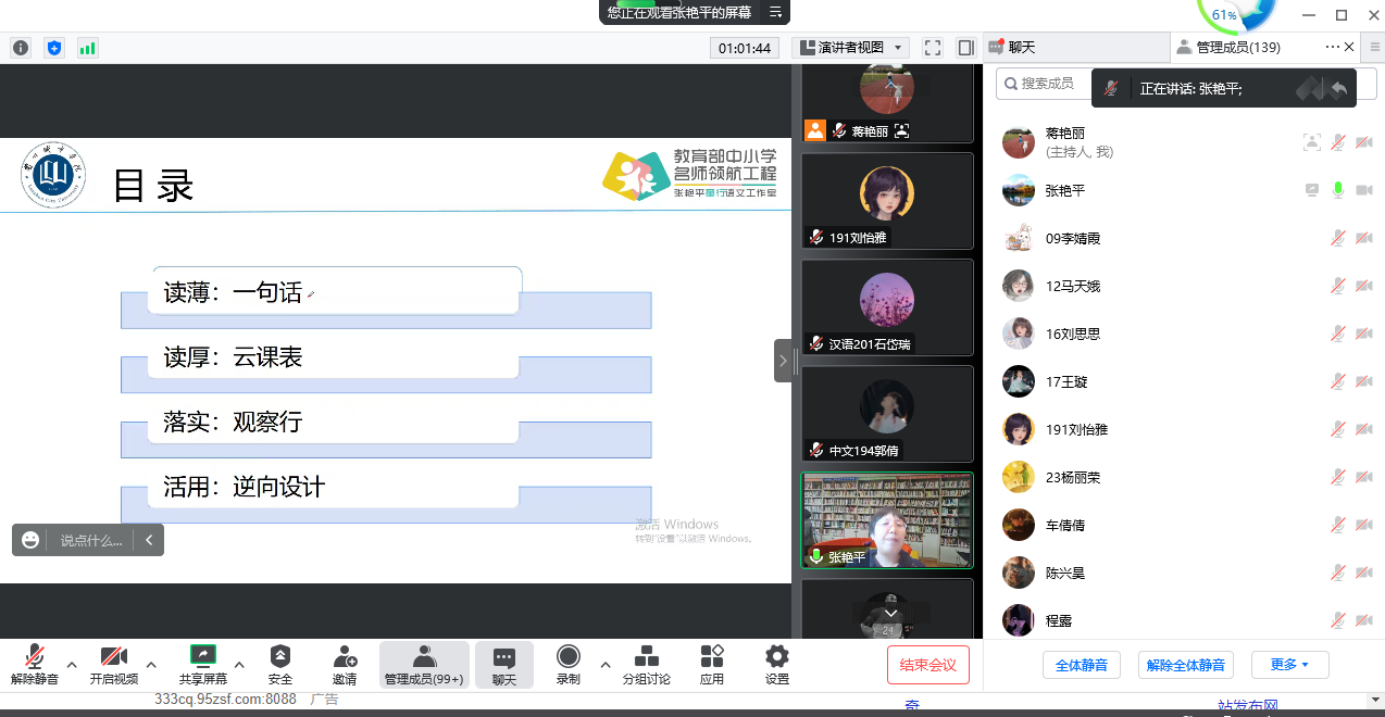 甘肃省领军人才、特级教师、陇原名师、beat365教育学院教授张艳平作了题为《研习新课标 赋能新课堂——准教师践行新课标例谈》的专题讲座。整场讲座以“始于育人、忠于课标”为主线,分析2022版义务教育课程标准的五大变化,立足“语文课程是一门学习国家通用语言文字运用的综合性、实践性课程”的根本,从“读薄:一句话”“读厚:云科课表”“落实:观察行”“活用:逆向设计”四个层级阐述了准教师践行新课标的方法与策略,并提出 “回到课表的常识、回到儿童的常识、回到教育的常识、回到语文的常识”的观点。