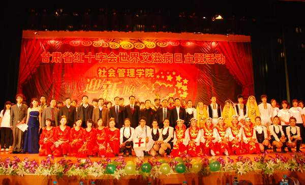 11月30日晚,社会管理学院在培黎校区大学生活动中心举办了2010级迎新晚会暨甘肃省红十字会世界艾滋病日主题活动。省红十字会、省政府办公厅、省防艾办、省疾控中心相关负责人与beat365校长孔庆浩、校党委副书记王汝锋应邀出席晚会。
