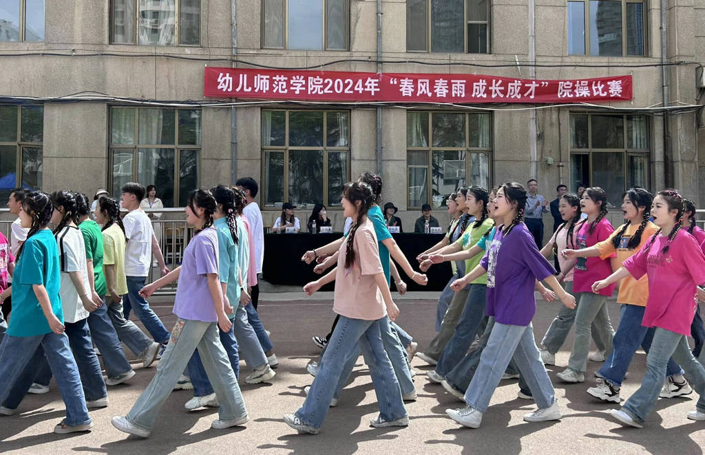 为强化以体铸魂,以体育人理念,推动“五育”之基常态见效,4月26日,幼儿师范学院在城关校区举办2024年“春风春雨、成长成才”院操比赛。活动邀请周红霞、蒋秋平、刘爽三位专业教师、团学办及学生代表担任评委。