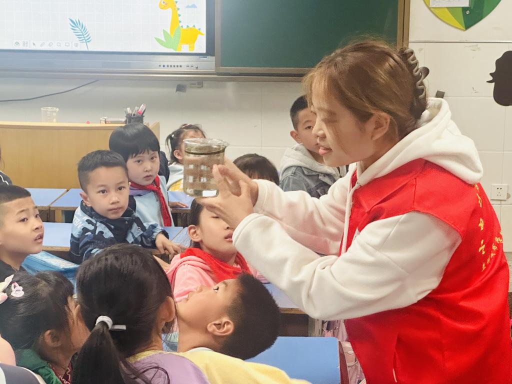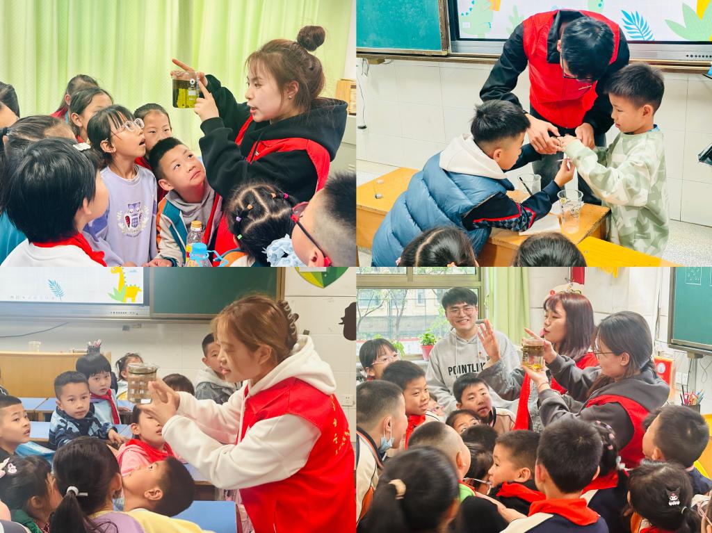 活动中,教职工党支部,学生党支部、团支部联合“小电灯”志愿实践队、电子设计创新社、数学建模协会,结合小学生身心发展特点,通过图片、视频等多种形式向小学生宣传电信网络防诈小知识。同时,志愿者们在教师党员的指导下,利用身边的材料,为兰州市安宁区十里店小学的同学们展示了“蜡烛的燃烧与熄灭”“叛逆的瓶子”“电动转圈圈”“彩虹雨”“烟雾瀑布”“乒乓球的沉与浮”等趣味物理实验。