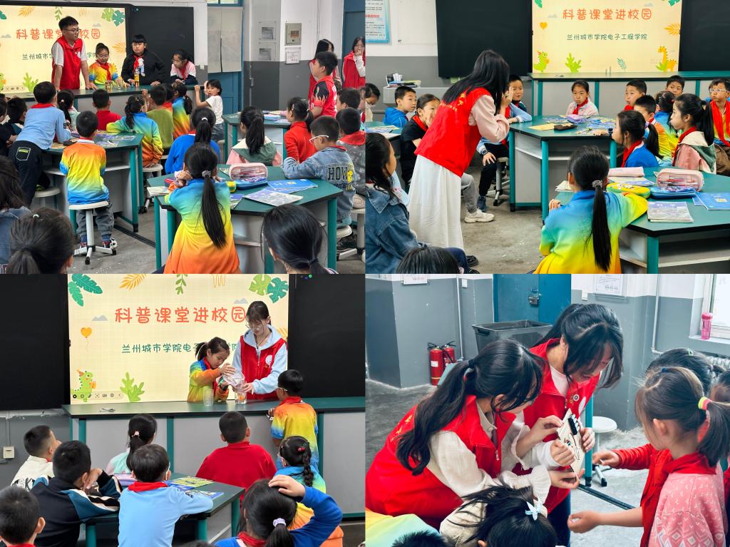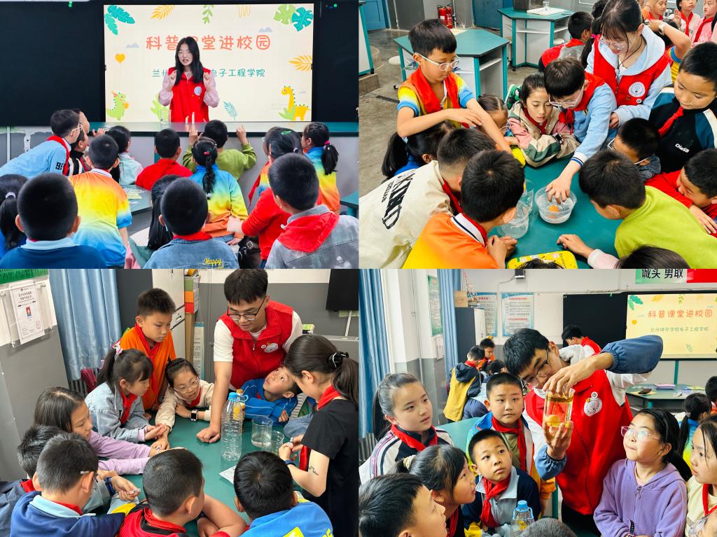 活动中,教职工党支部、学生党支部及团支部与“小电灯”志愿实践队、电子设计创新社以及数学建模协会共同合作,针对小学生的身心发展特点,运用图片、视频等多种媒介手段,向他们传授电信网络防诈骗知识。同时,在党员教师的专业指导下,学生们利用日常生活中的普通材料,为兰州交通大学附属小学的学生们展示了“电动转圈圈”“彩虹雨”“烟雾瀑布”以及“叛逆的瓶子”等富有趣味性和实践性的物理实验。这些实验不仅激发了小学生们的好奇心和求知欲,还有效提升了他们的动手实践能力。