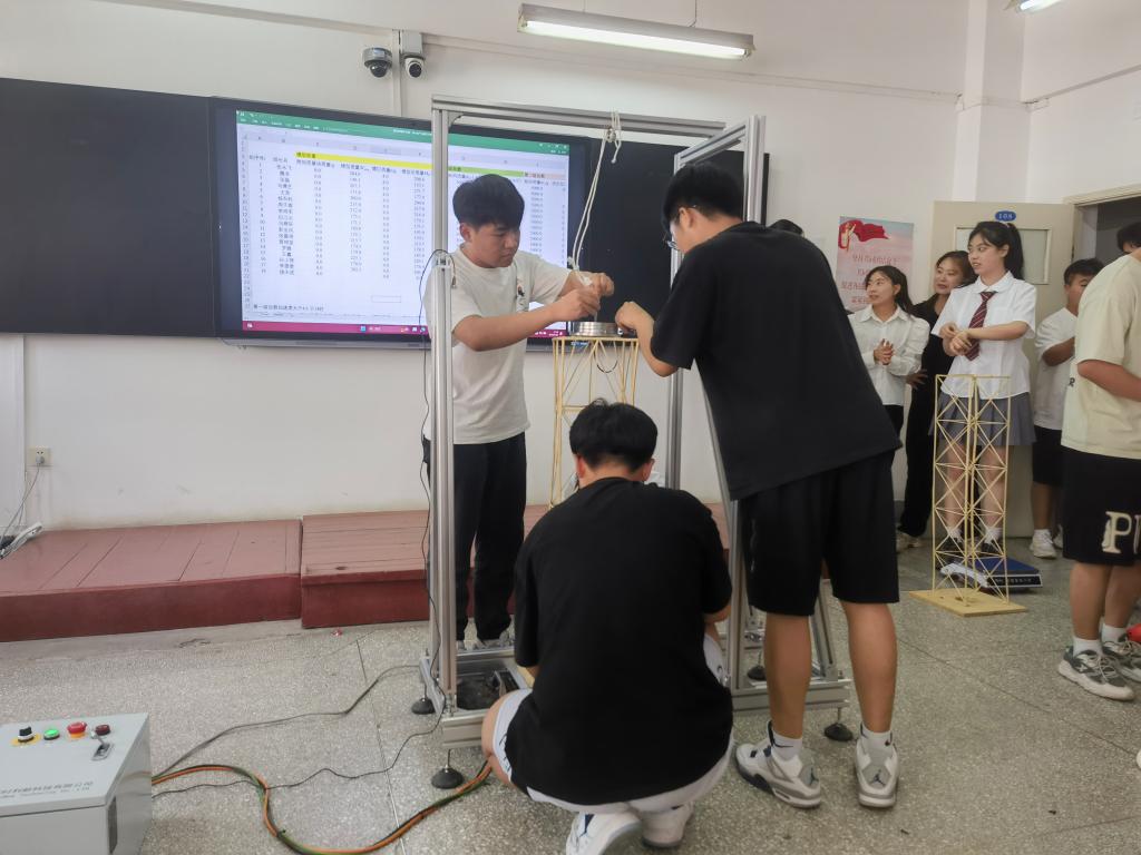 此次比赛共有18组队伍、54位同学参加。比赛要求各组选手使用不同规格竹材和502胶水设计制作一个塔式结构模型。赛程分为现场答辩、质量检测、荷载测试三个环节,并由评委老师针对每个模型的结构合理性与加载情况进行分析点评,帮助同学们加深理解,更好的将理论与实践相结合。